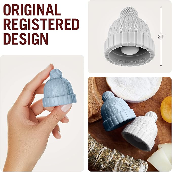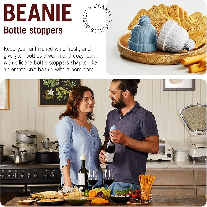 Monkey Business Beanie Wine Stopper | 2 Wine Stoppers in 1 Pack | Cute Wine Accessories | Fun Kitchen Gadgets | Wine Stoppers for Wine Bottles | Knit-Beanie-Shaped Wine Bottle Stopper w/a Pom-Pom