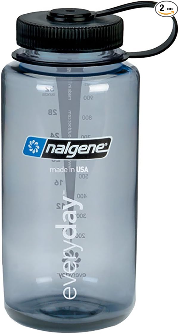 Nalgene BPA Free Tritan Wide Mouth Water Bottle, 1-Quart, 2 Count