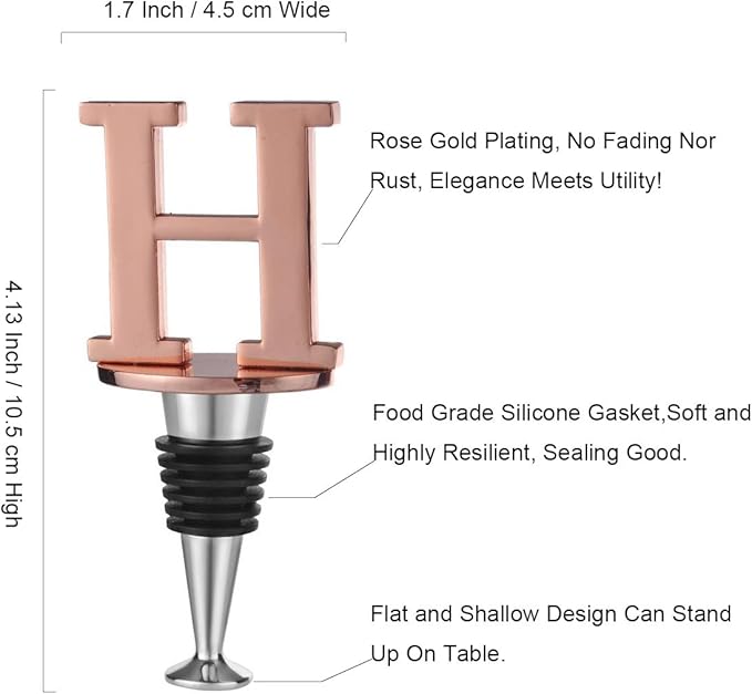 Miicol Wine Bottle Stopper, Prosecco Stopper, Rose Gold Wine Stopper, Personalised Champagne Stopper, Initial Wine Stopper, Funny Prosecco Gift, Wine Lovers Gift, Kitchen Decor, Letter H