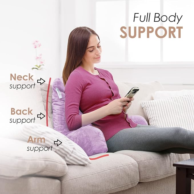 Nestl Reading Pillow for Kids, Small Bed Pillow, Back Pillow for Sitting in Bed, Memory Foam Chair Pillow, Reading & Bed Rest Pillows, Lavender Back Pillow for Bed, Arm Pillow with Pockets