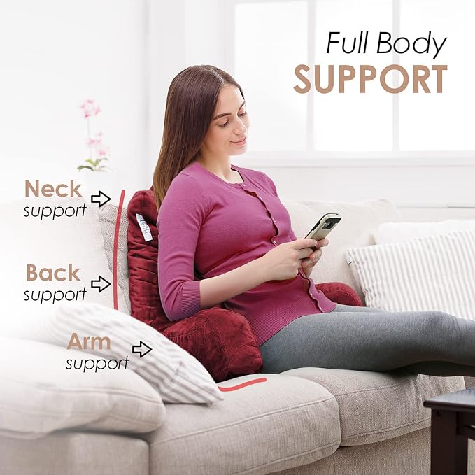 Nestl Reading Pillow for Kids, Small Bed Pillow, Back Pillow for Sitting in Bed, Memory Foam Chair Pillow, Reading & Bed Rest Pillows, Red Back Pillow for Bed, Arm Pillow with Pockets