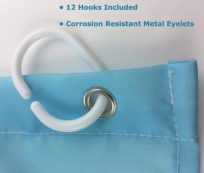 - INCLUDED: Set of 12 plastic hooks and a weighted bottom hem. Hooks are easily installed into corrosion resistant metal eyelets/grommets. Weighted bottom hem keeps shower curtain stabilized.