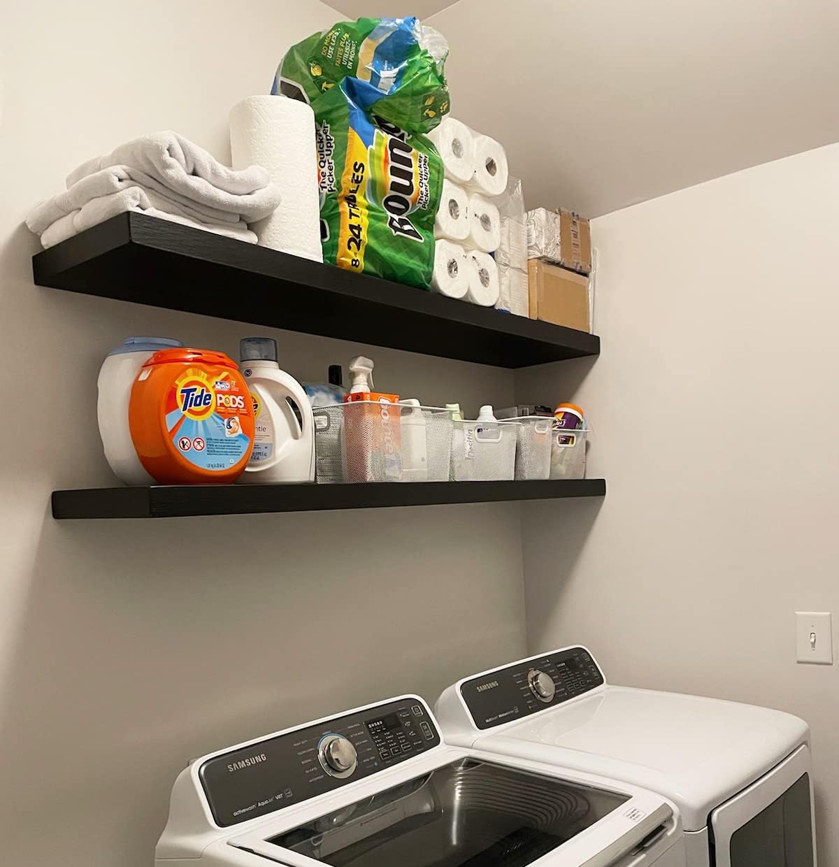 - Material: Solid White Pine 12"D x 72"W x 2"H, depth suitable for books, dishes, laundry items