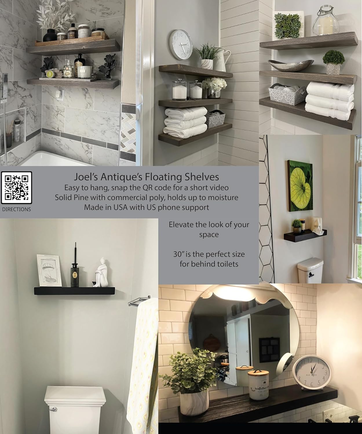 Joel's Antiques - 30 Inch Wooden Floating Shelves for Wall - 30x12x2 in - Made of Natural Wood - Long Heavy Duty Rustic Wall Shelves for Bedroom - Perfect for Living Room, Kitchen - Gray, Grey