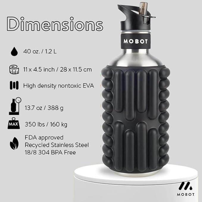 - GYM BOTTLE: Whether you're a seasoned athlete or just starting your fitness journey, our Mobot foam roller water bottle is your ultimate companion, offering hydration, muscle relief, and convenience in one.