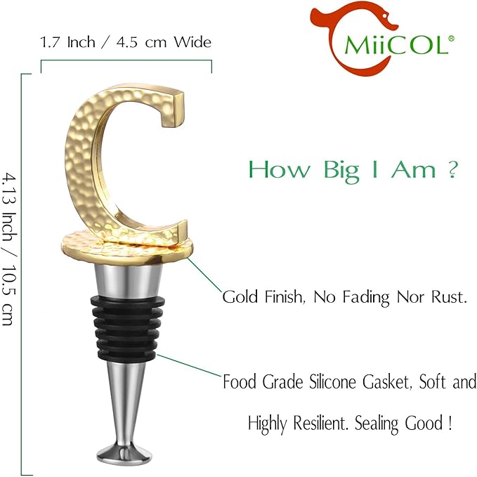 - Fashionable and Practical - The MiiCol wine stopper features a stylish design with personalized initials, adding a pop of color to any table setting. Its distinctive lettering helps identify different wines or owners, making it an ideal gift for special occasions.