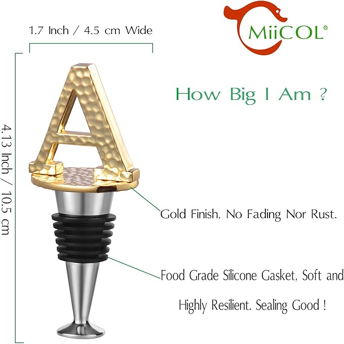 - Fashionable and Practical - The MiiCol wine stopper features a stylish design with personalized initials, adding a pop of color to any table setting. Its distinctive lettering helps identify different wines or owners, making it an ideal gift for special occasions.