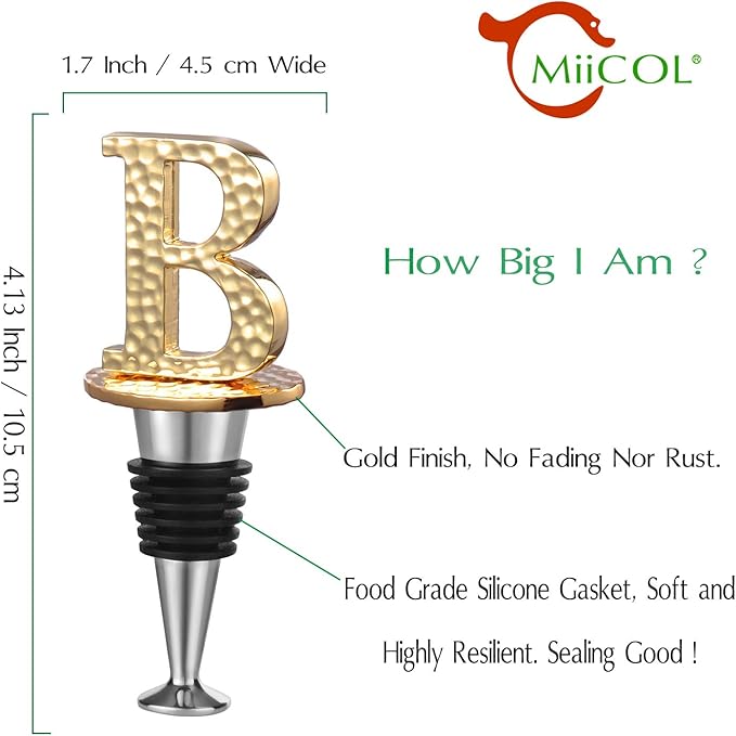 • Fashionable and Practical - The MiiCol wine stopper features a stylish design with personalized initials, adding a pop of color to any table setting. Its distinctive lettering helps identify different wines or owners, making it an ideal gift for special occasions.