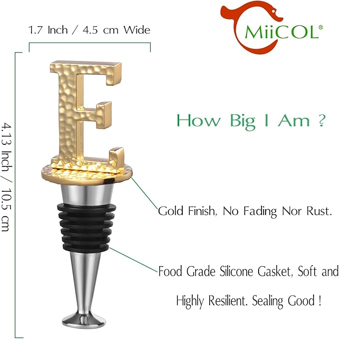 - Fashionable and Practical - The MiiCol wine stopper features a stylish design with personalized initials, adding a pop of color to any table setting. Its distinctive lettering helps identify different wines or owners, making it an ideal gift for special occasions.
