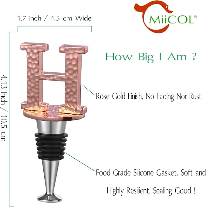 - Fashionable and Practical - The MiiCol wine stopper features a stylish design with personalized initials, adding a pop of color to any table setting. Its distinctive lettering helps identify different wines or owners, making it an ideal gift for special occasions.
