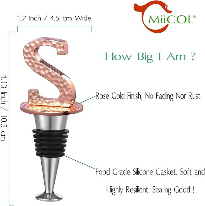- Fashionable and Practical - The MiiCol wine stopper features a stylish design with personalized initials, adding a pop of color to any table setting. Its distinctive lettering helps identify different wines or owners, making it an ideal gift for special occasions.