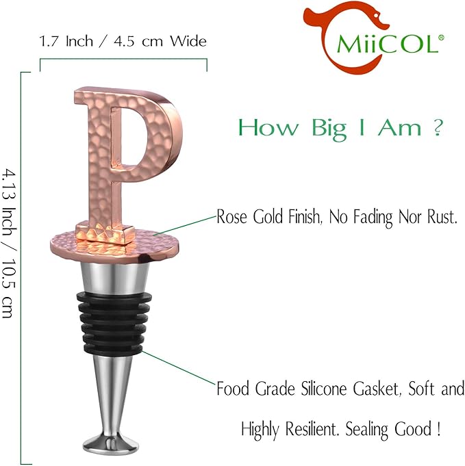 • Reusable - Crafted from die-cast metal, the MiiCol wine stopper is durable. A food-grade silicone gasket ensures health and safety. The rose gold plating resists fading and rusting, preserving its appearance.