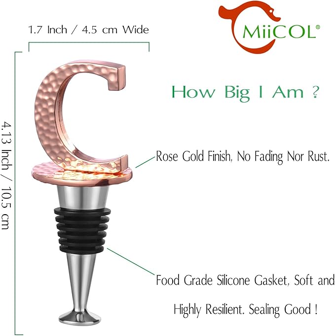 - Fashionable and Practical - The MiiCol wine stopper features a stylish design with personalized initials, adding a pop of color to any table setting. Its distinctive lettering helps identify different wines or owners, making it an ideal gift for special occasions.