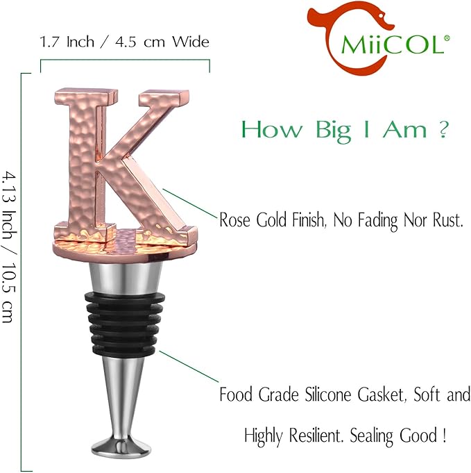 - Fashionable and Practical - The MiiCol wine stopper features a stylish design with personalized initials, adding a pop of color to any table setting. Its distinctive lettering helps identify different wines or owners, making it an ideal gift for special occasions.