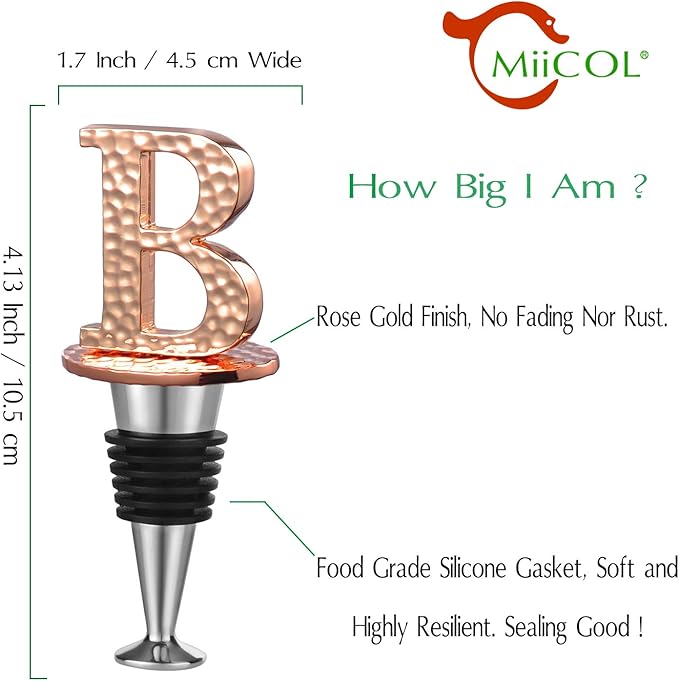 • Fashionable and Practical - The MiiCol wine stopper features a stylish design with personalized initials, adding a pop of color to any table setting. Its distinctive lettering helps identify different wines or owners, making it an ideal gift for special occasions.