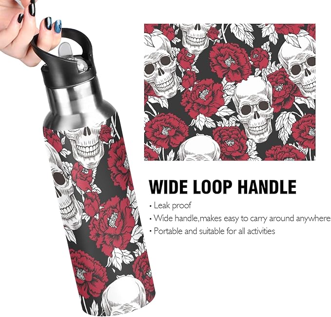 - LEAK PROOF LID: The flasks water bottles has a leak-proof design, so you don’t have to worry about water spilling when the bottle is tilted. The lid with handle and is more portable