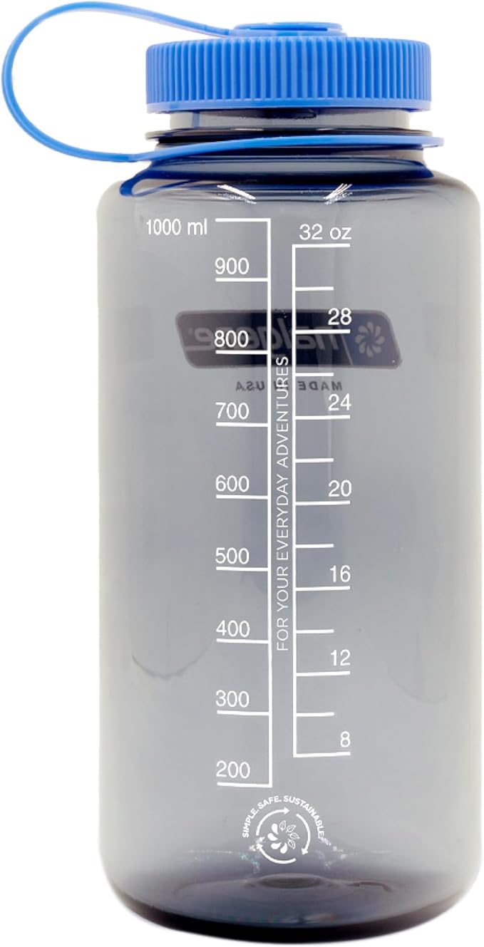 Nalgene Sustain Tritan BPA-Free Water Bottle Made with Material Derived from 50% Plastic Waste, 32 OZ, Wide Mouth,Smoke Grey