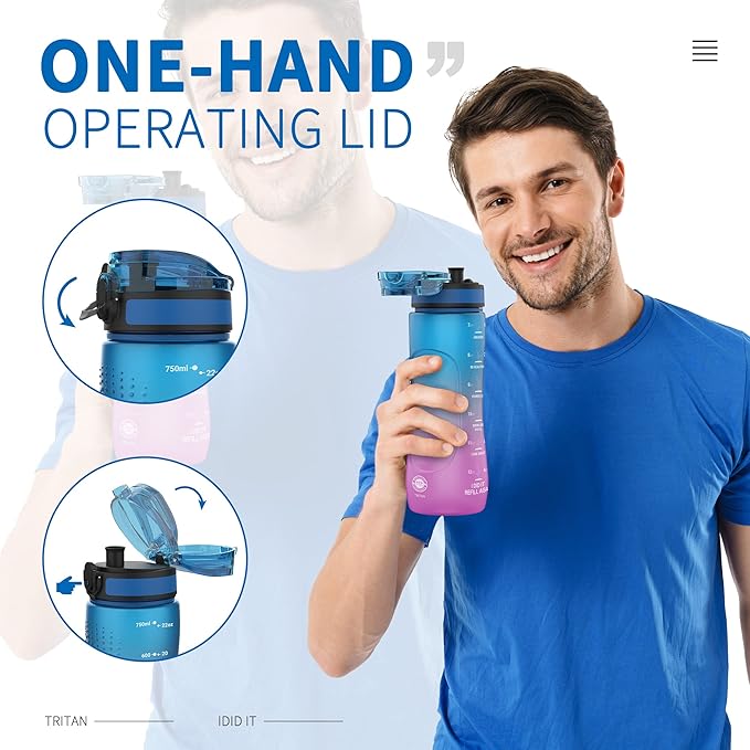 - ONE-HANDED OPERATING - Kitart water bottle comes with a one-handed opening lid. When you are cycling, climbing, or other exercises, you still can drink water with one hand leisurely.
