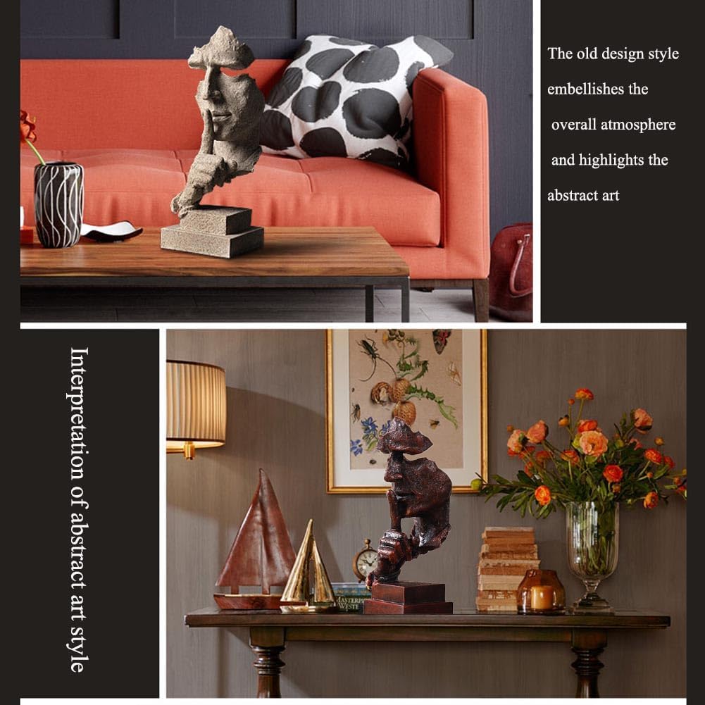 Silence is a Golden Statue Modern Mens Creative Office Home Room Decorations Sculpture Bookshelf Decorative 4.7 x 4.3 x 13.1in(Ancient Gold) Modern Home Décor