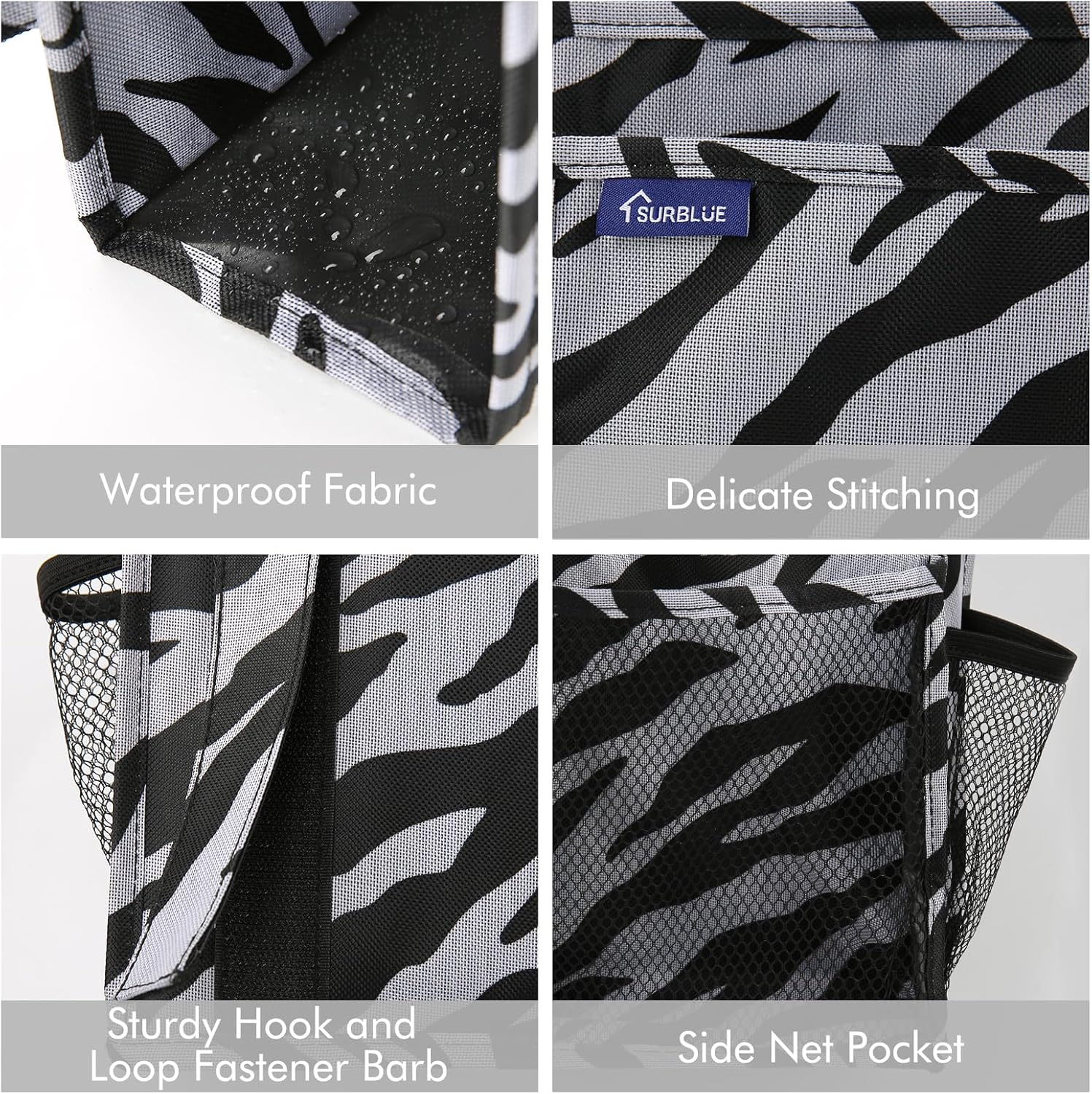 Surblue Bedside Caddy Hanging Organizer Storage Bag Pocket for Bunk, Hospital, College Dorm Rooms, Baby Bed Rails, Camp - 8 Pockets (Large, Zebra)