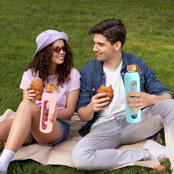 - Durable Borosilicate Glass: The Sursip 32 oz Water Bottle is made from BPA-free borosilicate glass, offering a safe and reusable solution that’s both leakproof and dishwasher safe, it’s designed to withstand your active lifestyle