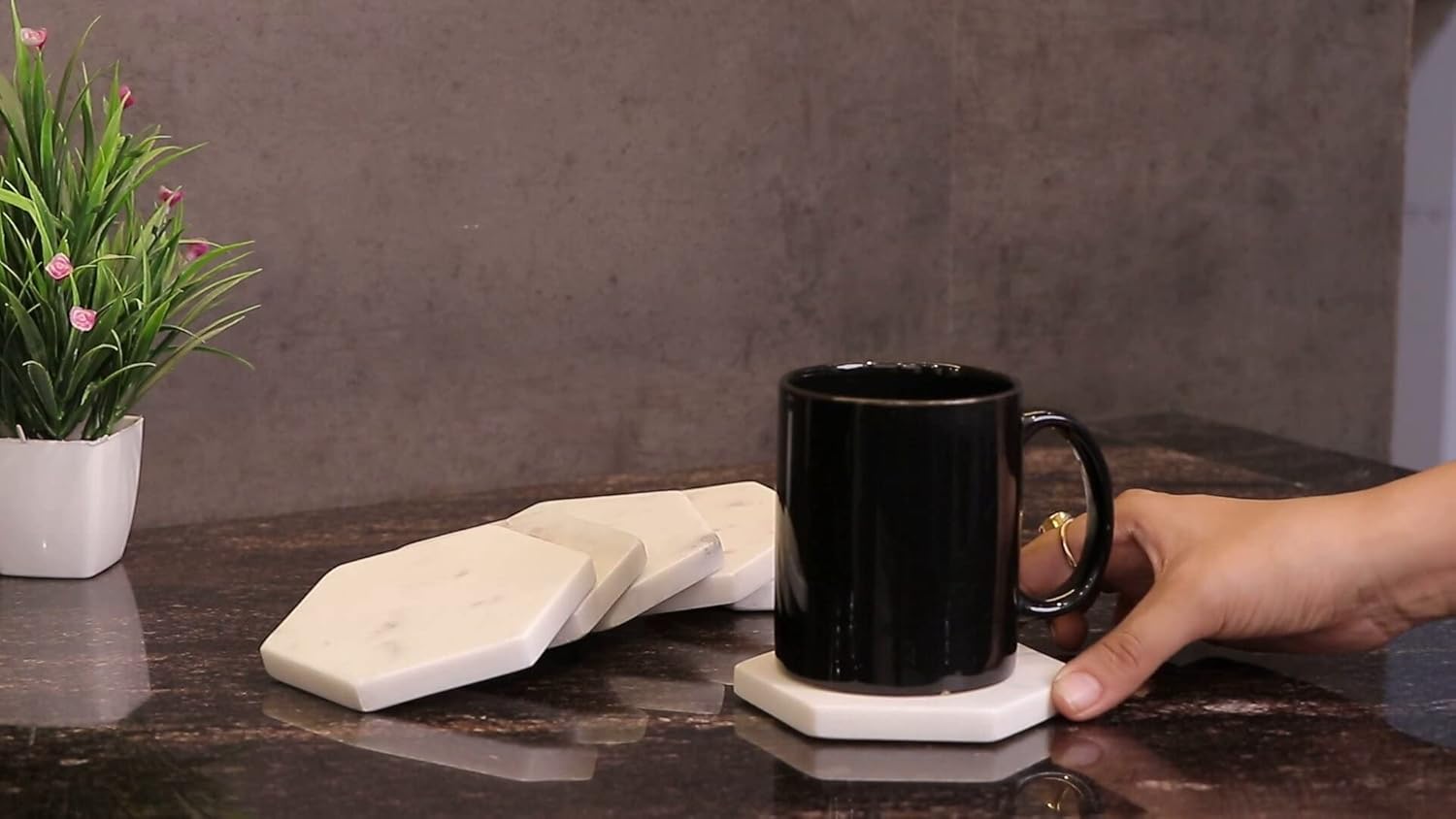 - PROTECT YOUR FURNITURE: Tired of cleaning smudges off your precious furniture, these marble coasters keep the stains/ water rings/ moisture away keeping your dining table or your kitchen countertop clean. Enjoy your favourite drinks, cocktails, margarita on your cherished table or desk as these coasters don’t mess up the table.