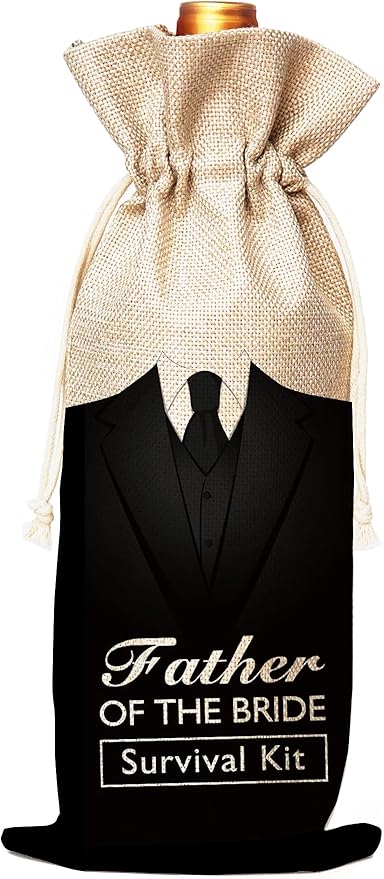 Muruseni Father of the Bride Gift,Gift for Father in law, Birthday Gift for Father in law, Gift to Wife's Father, Groom to Father in law Gift-Cotton linen Drawstring Wine Bags(1 Pack)