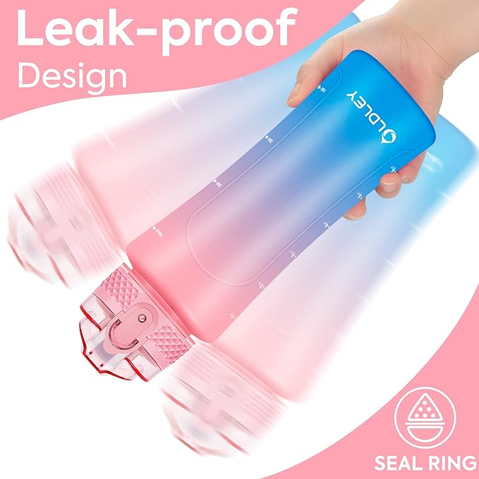 OLDLEY Kids Water Bottle for School with Straw Chug Lid, 15 oz Unbreakable Leak-Proof BPA-Free Motivational Water Bottles with Time Marker for Travel Sports Gym, 2 Lids, Candy Pink/Blueberry