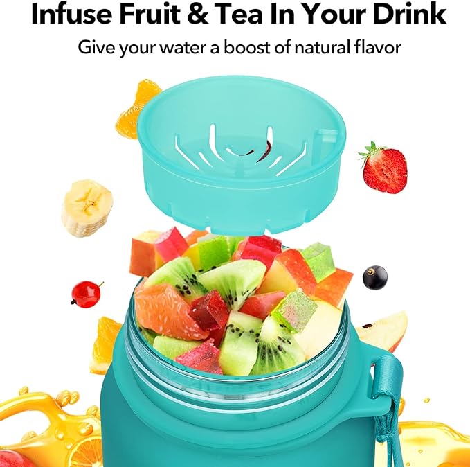 1L/750ml Motivational Water Bottle with Time Marker, Leak-proof BPA Free Drink Bottle with Fruit Strainer or straw, Perfect for Fitness, Gym and Outdoor Sports