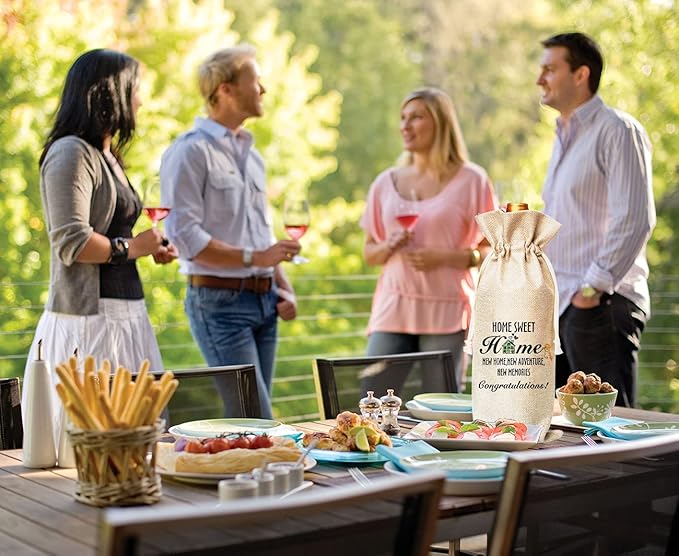 Muruseni New Home Congratulation Gift,Meaningful HousewarmingGifts,Men, Women, Friends, Colleagues, Bosses, Subordinates, Partners -Cotton linen Drawstring Wine Bags(1 Pack-SW02)