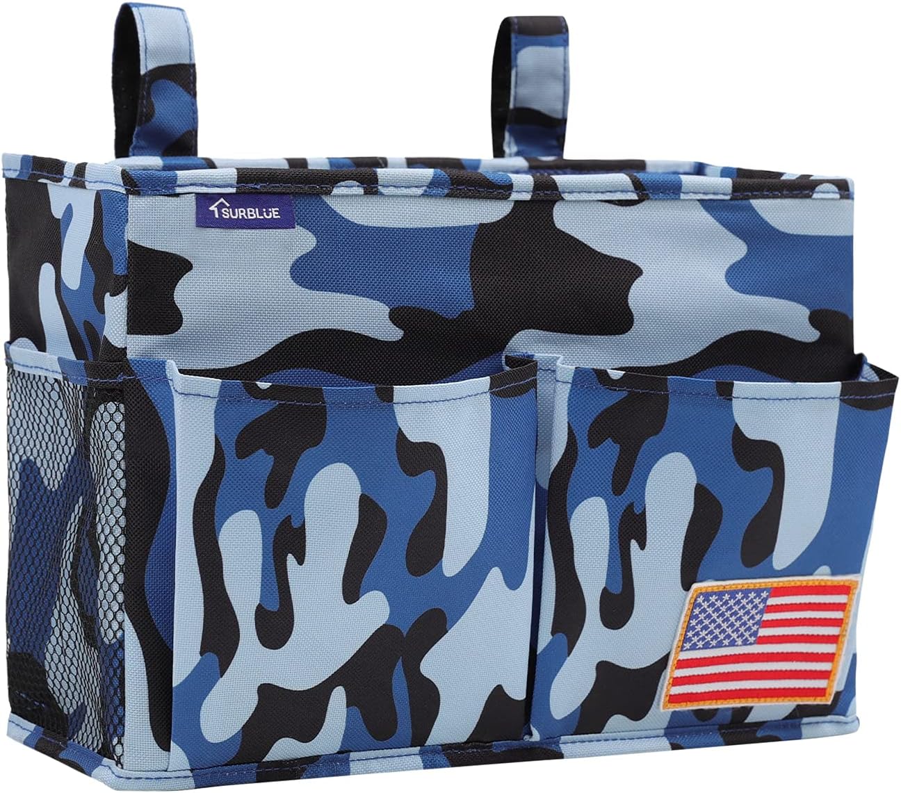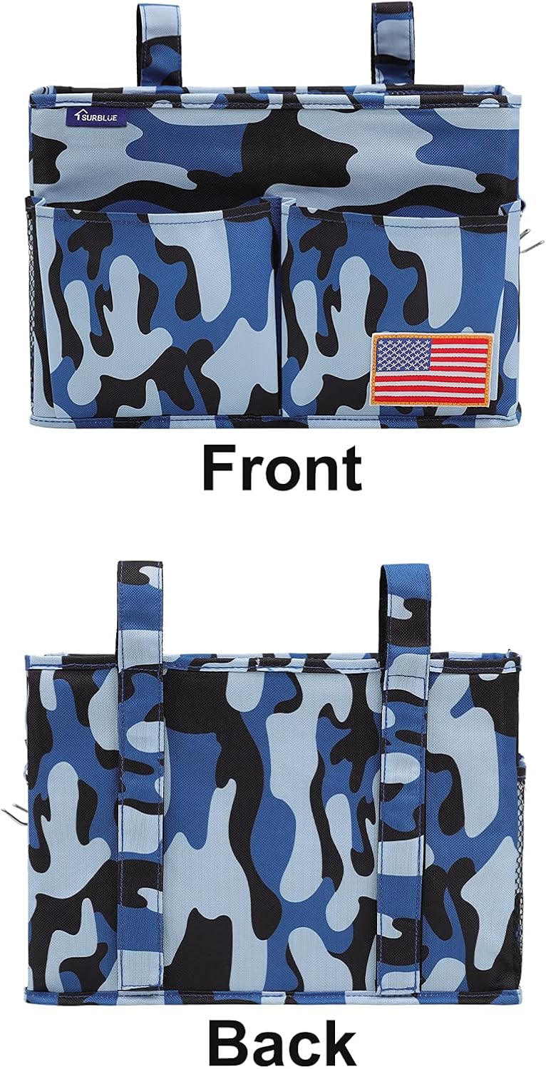 Surblue Bedside Caddy Hanging Bed Organizer Storage Bag Pocket for Bunk and Hospital Beds, College Dorm Rooms Baby Bed Rails, Wheelchair Side Bag, Camp Chiars, 4 Pockets and 2 Hooks (Small Ocean)