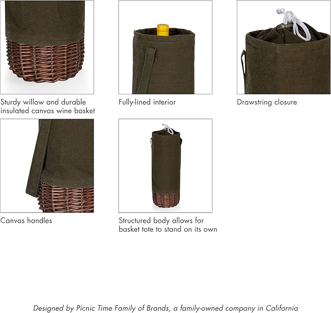 - Steamed handwoven willow and canvas basket with capacity for 1 wine bottle