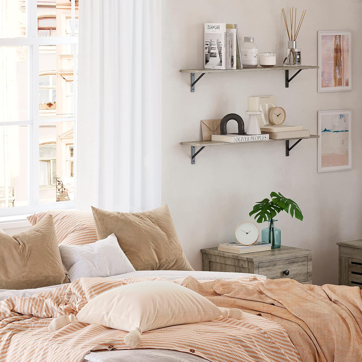 DINZI LVJ Long Shelf, 31.5 Inch Large Wall Mounted Shelves Set of 2, Easy-to-Install, Display Ledges with Sturdy Metal Brackets for Living Room, Bathroom, Bedroom, Kitchen, Laundry Room, Gray Wash