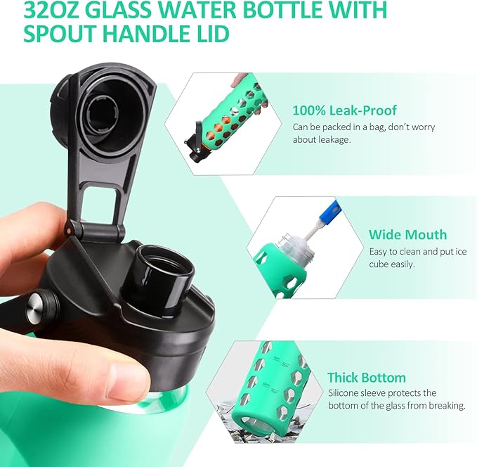 - TWO LID DESIGNS:Natural bamboo straw lid and leak-proof spout handle lid -The bamboo straw lid makes sipping more effortless, allowing for easy hydration throughout the day whether you're at the home or office.-The spout enables smooth liquid flow and the handle attached to the lid allows for easy carrying on the go.Suitable for gym and outdoors.