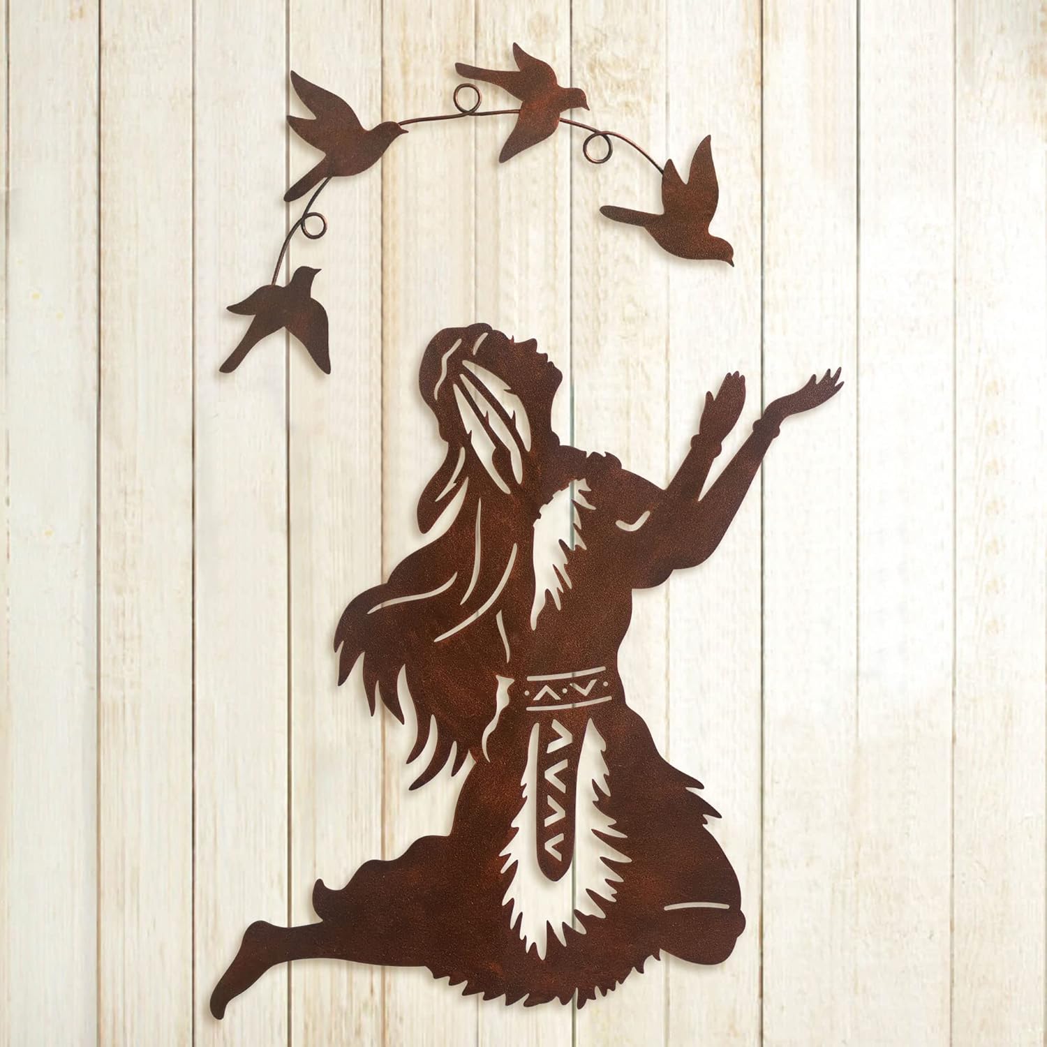 Native American Southwest Metal Wall Art Elf Woman West Indian Style Set of 2