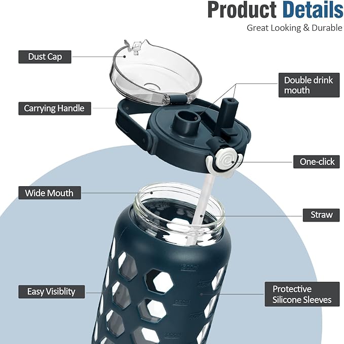 - EASY TO CLEAN:Wide mouth daily water bottle or one to use at the gym is easy to fill with ice cubes and hand wash,which is dishwasher safe,BPA Free.