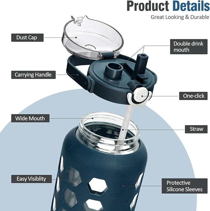 - Large Capacity: 64 oz size allows one full bottle of water without frequent refills.