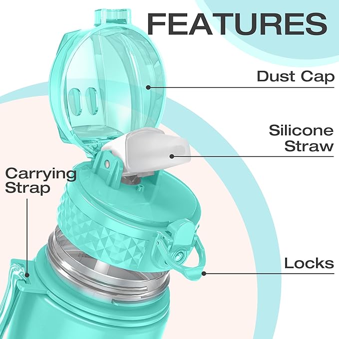 - 【Best for Kids】: Specifically designed for young children to promote hydration throughout the day. The flip-top lid incorporates a safety lock to prevent dust and leaks and can be effortlessly