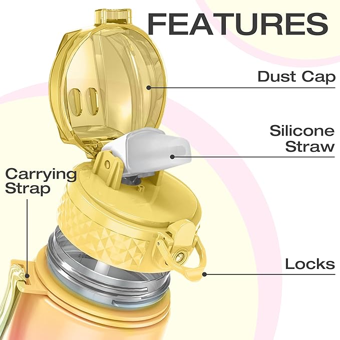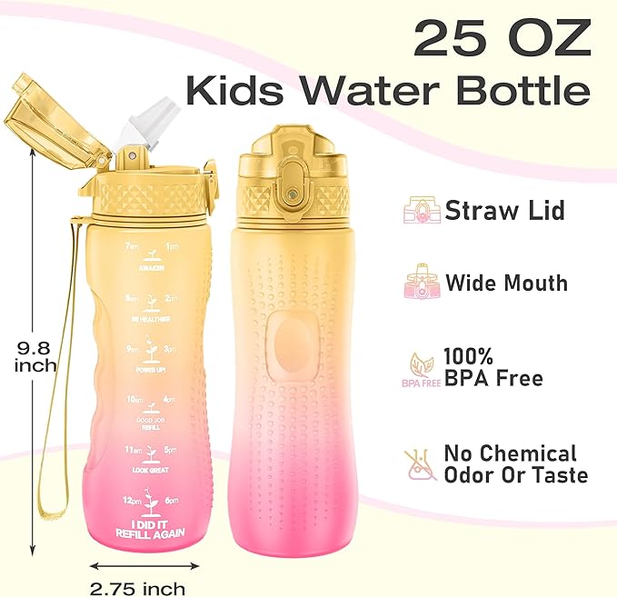 - 【Best for Kids】: Specifically designed for young children to promote hydration throughout the day. The flip-top lid incorporates a safety lock to prevent dust and leaks and can be effortlessly
