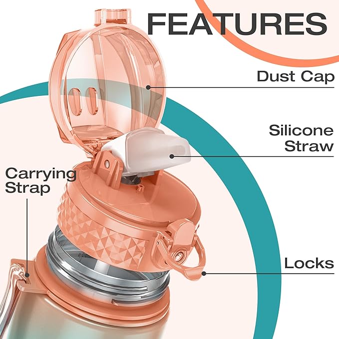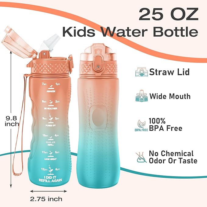 - 【Best for Kids】: Specifically designed for young children to promote hydration throughout the day. The flip-top lid incorporates a safety lock to prevent dust and leaks and can be effortlessly