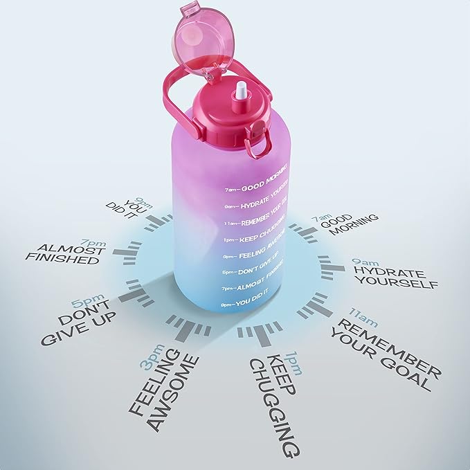 - ALL-DAY HYDRATION The One-gallon water bottle with motivational quotes by the hour keeps you hydrated throughout the day and your daily water intake on track at home, gym, or while you travel