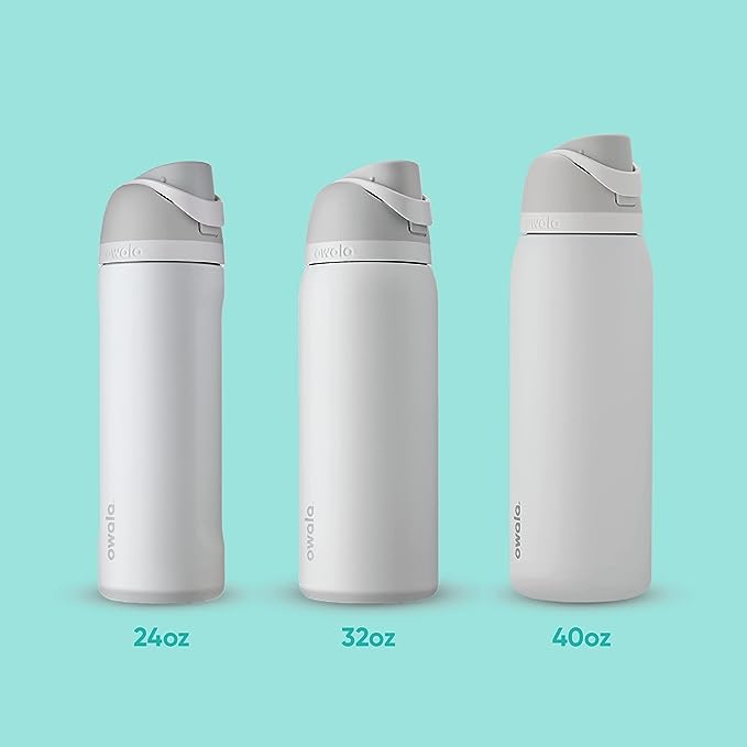 - 40-ounce insulated stainless-steel water bottle with a FreeSip spout and push-button lid with lock