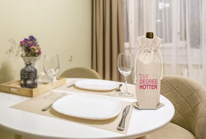 One Degree Hotter Graduation Wine Bag (1 Pack)- Graduation Gift For High School BA, BS, College Grad, Congrats Grad, Cotton linen Wine Gift Bag With Drawstring -A068