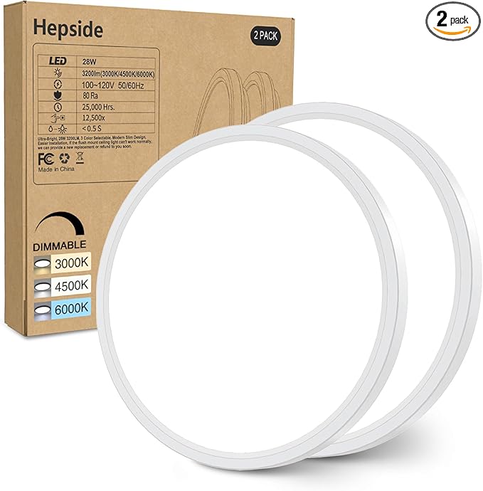 - 【Energy Saving and Stable Lighting Fixture】 Equivalent to a traditional 280W five-bulb, Hepside LED ceiling light only has 28W(3200 lumens) low power consumption, which can save up to 90% on your home electricity bills by replacing your old lighting fixtures . No flicker, no blue light, natural and soft lighting source care for your family.