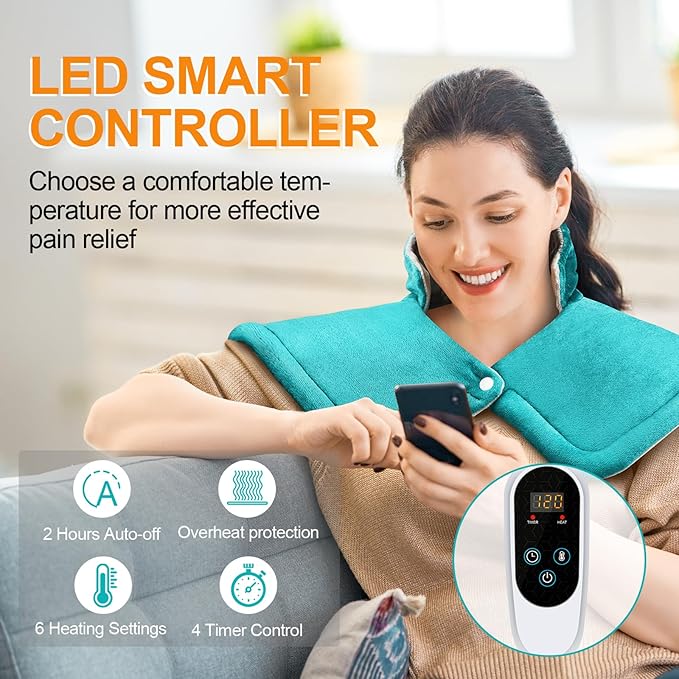 - Weighted Design for Muscle Soreness Relief: This 2 lb weighted heating pad for neck and shoulders with wearable heating technology is specially designed to relieve muscle soreness and stiffness in the neck, back, abdomen and other body parts. The double-sided design offers you a different selection of colors, Ideal for your parent, friend, family or elders to use in daily life.