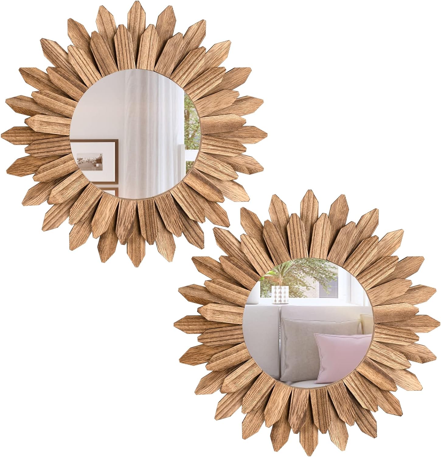 - Boho Wall Decor Mirror: The design of wood sunburst base on the element of boho style, it will be a nice touch and goes well with your others boho decor style; decent decorative piece with perfect size for wall mounted or lean on wall at desk, perfect for your bedroom, living room, bathroom, kitchen and more