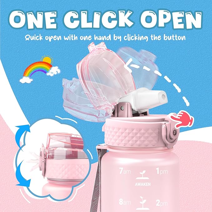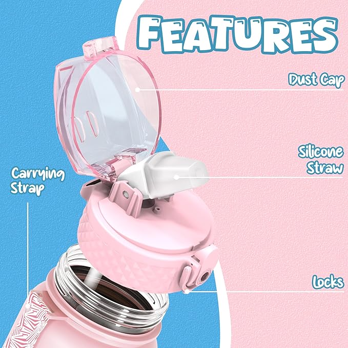 - 【Best for Kids】: Specifically designed for young children to promote hydration throughout the day. The flip-top lid incorporates a safety lock to prevent dust and leaks and can be effortlessly