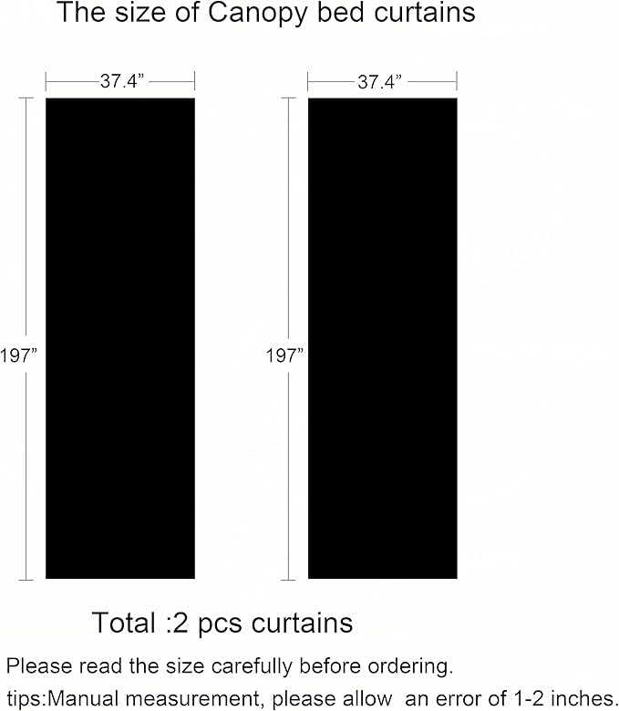 - Package list: Sold as 2 Caopies Bed Curtains Panel(Not include bed frame/poles),you need to buy and make it yourself.