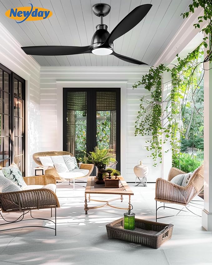 Newday 52 inch Ceiling Fans with Lights - Black Ceiling Fan with Light and Remote, 3 Blades 3 Colors Dimmable LED, 6 Speeds Reversible Quiet DC Motor Ceiling Fan For Living Room Bedroom Indoor Outdoor