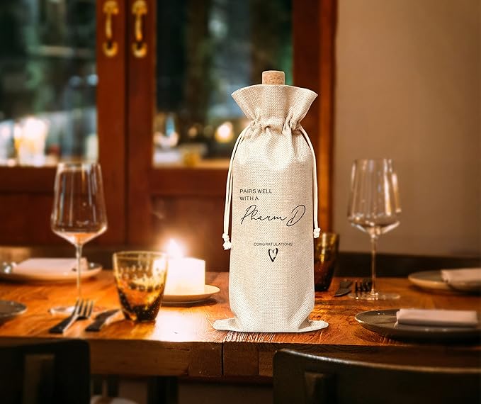 PharmD Graduation Wine Gift Bag, Graduation Gift Wine Bag for Pharmacist, Pharmd, Her, Him, Graduation Party, 1 Pc Burlap Wine Bottle Cover Bag (f19)